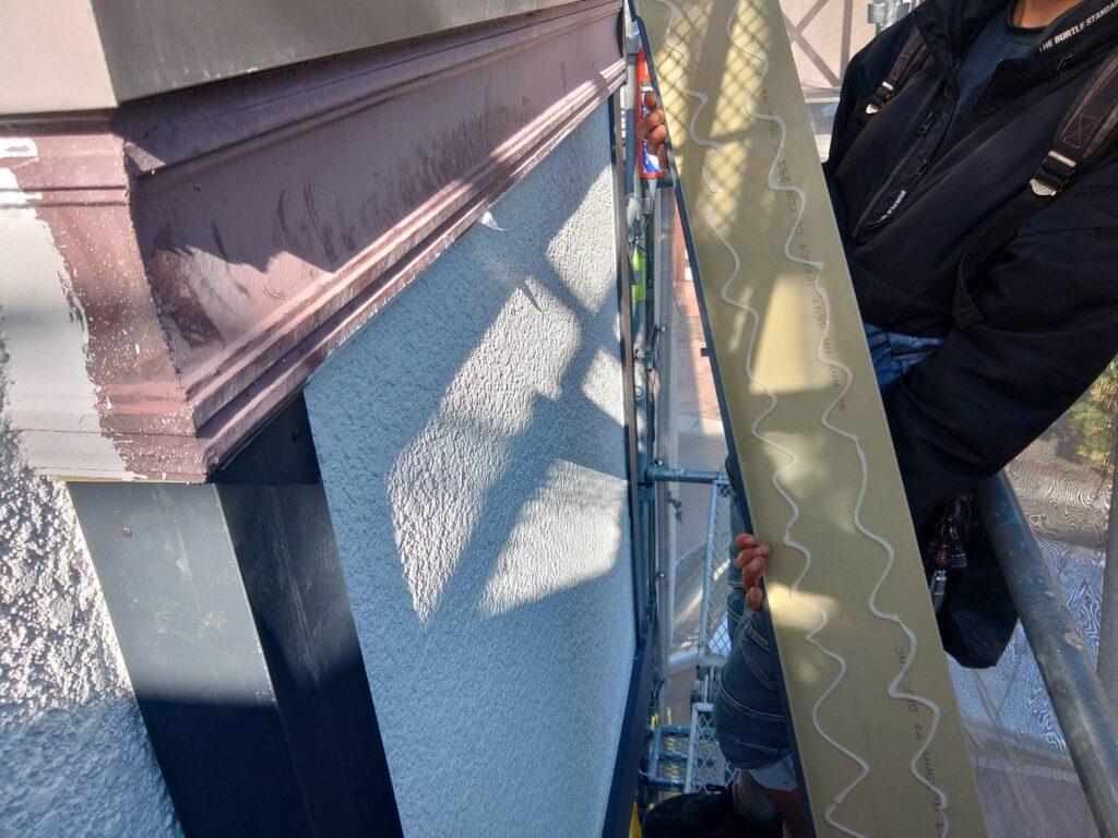 こんにちはぺんき屋工房亀岡店です。 今回はサッシ周りや建物の真ん中などについていたりする幕板を施行いたしました。